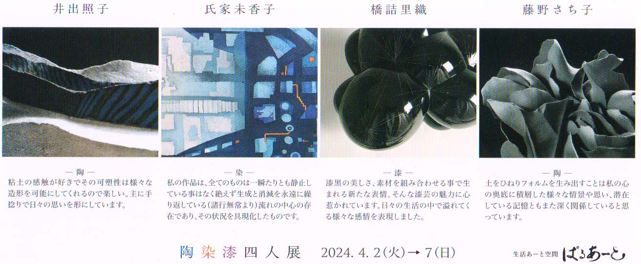 | ■ 「陶 染 漆 四人展」 2024,4,2(火)-7(日) 生活アート空間・ぱるあーと |